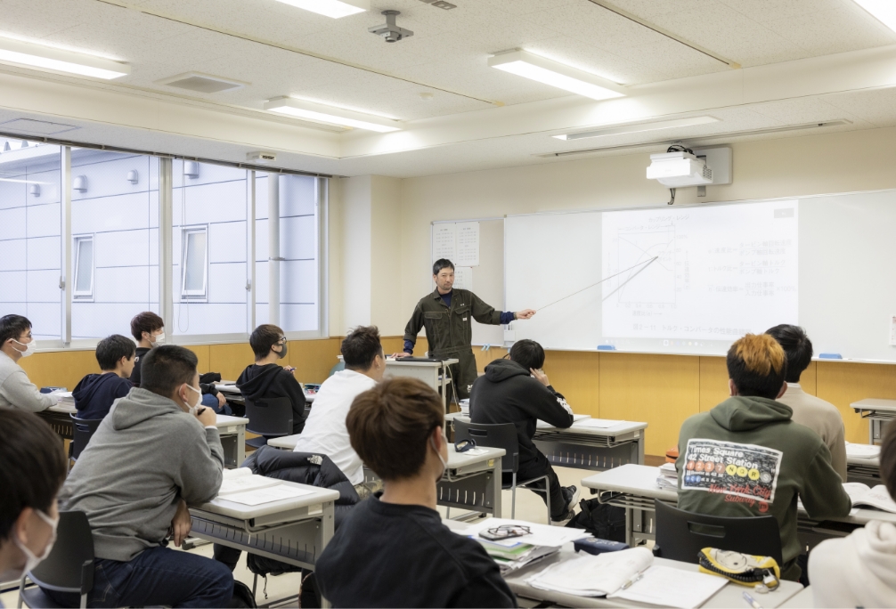 リアルな現場の技術や社会人としての立ち振る舞い方などを学びながら、整備の基礎から応用までしっかり身につけることができます。