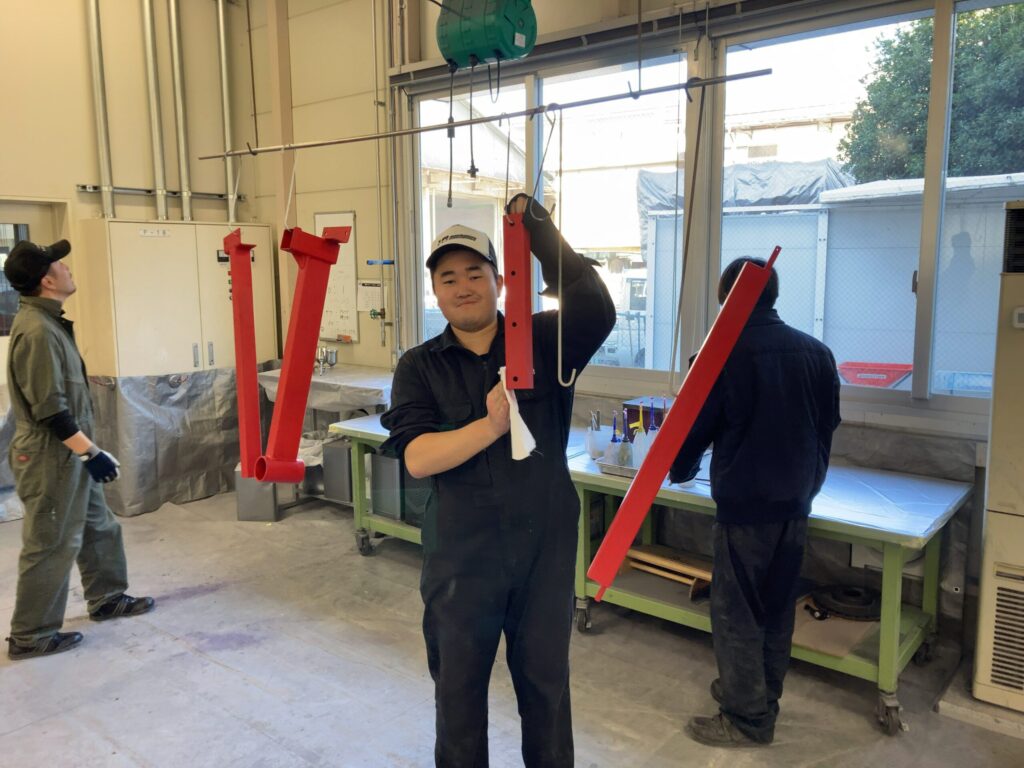 学科長がステッカーを貼ってくれて、エンジンを装着して完成!