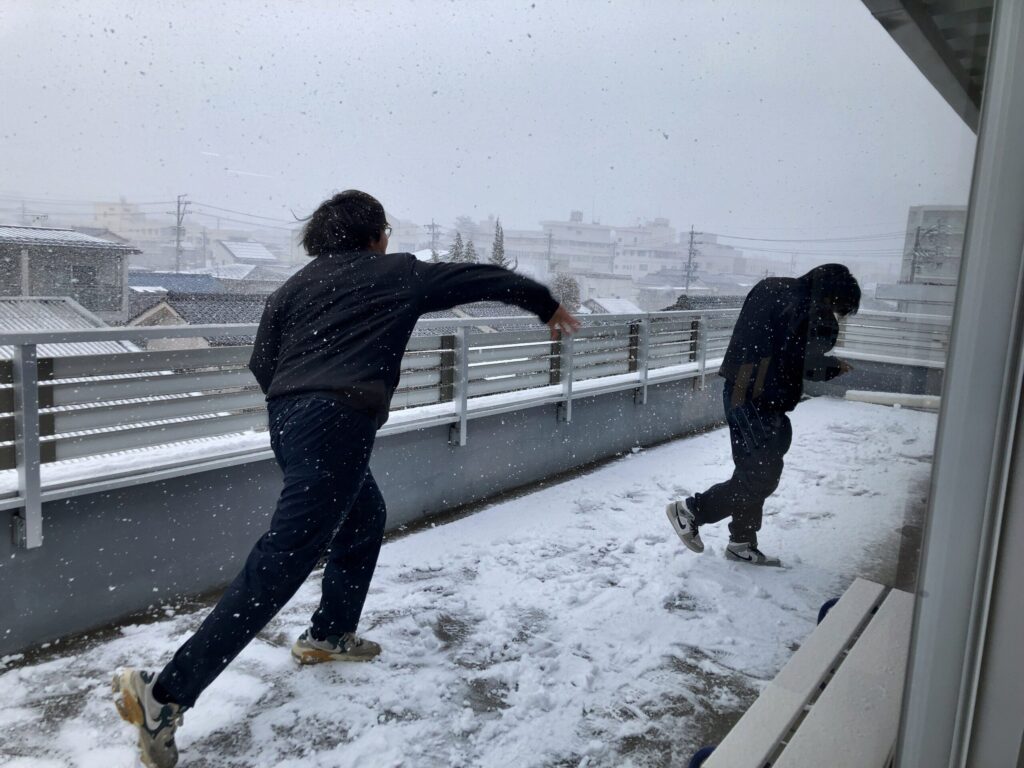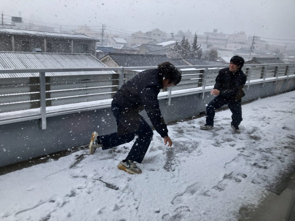 ※ケンカではありません。久々の学校で、雪も降って、嬉しくてしょうがないだけです。