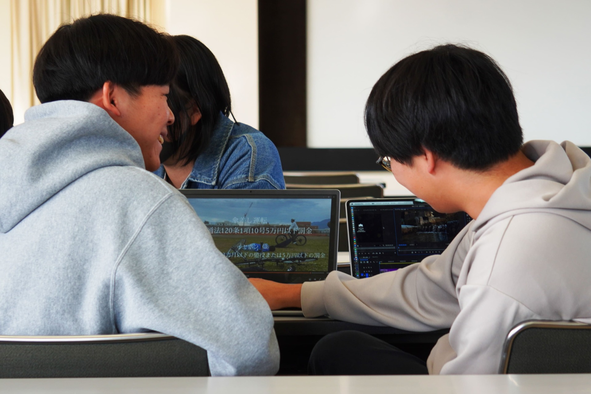 本校クリエイトデザイン学科は、姉妹校である松本情報工科専門学校 スポーツバイシクル学科と初めてコラボレーションし、自転車運転マナー啓発動画を制作しました。